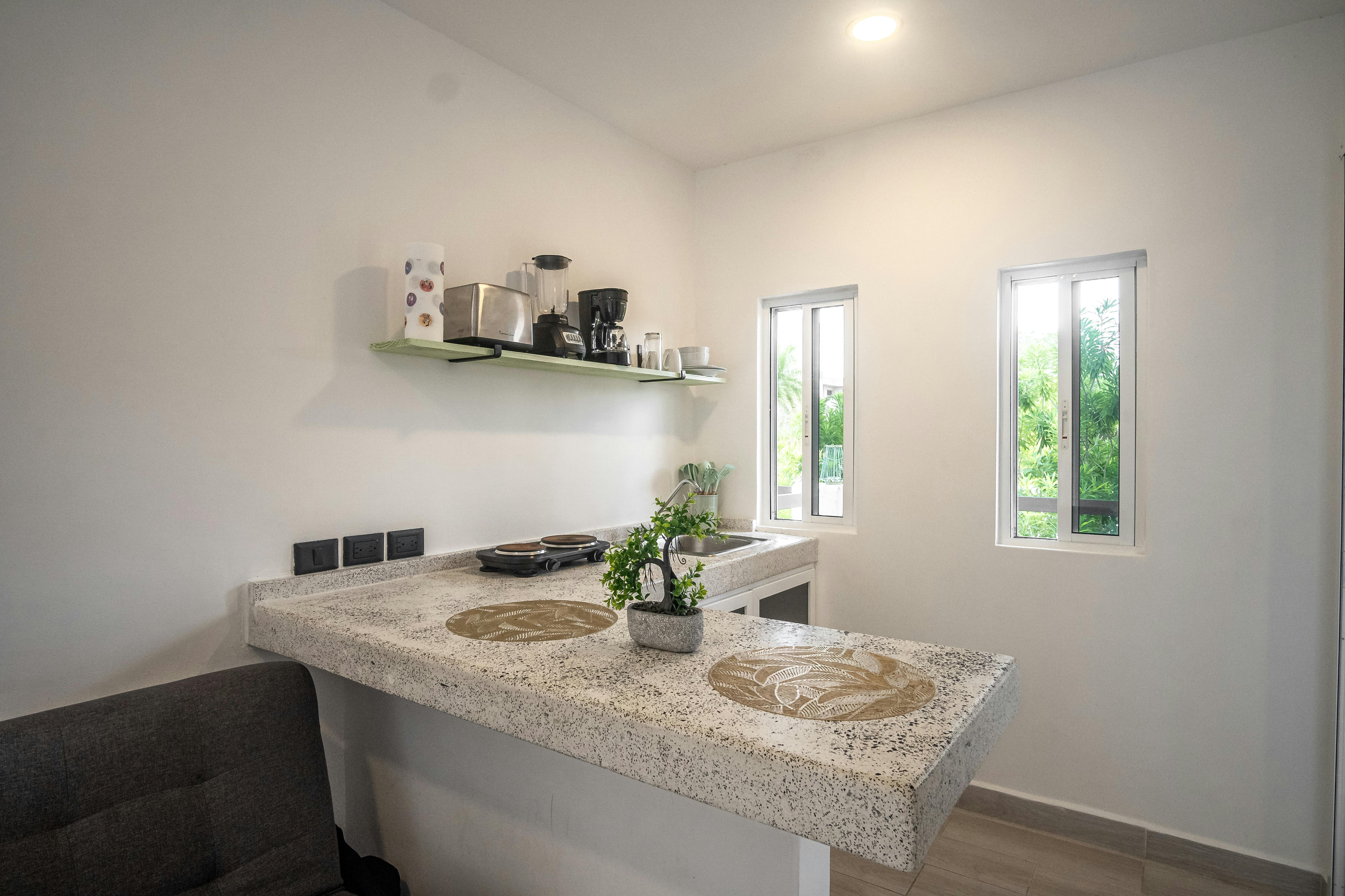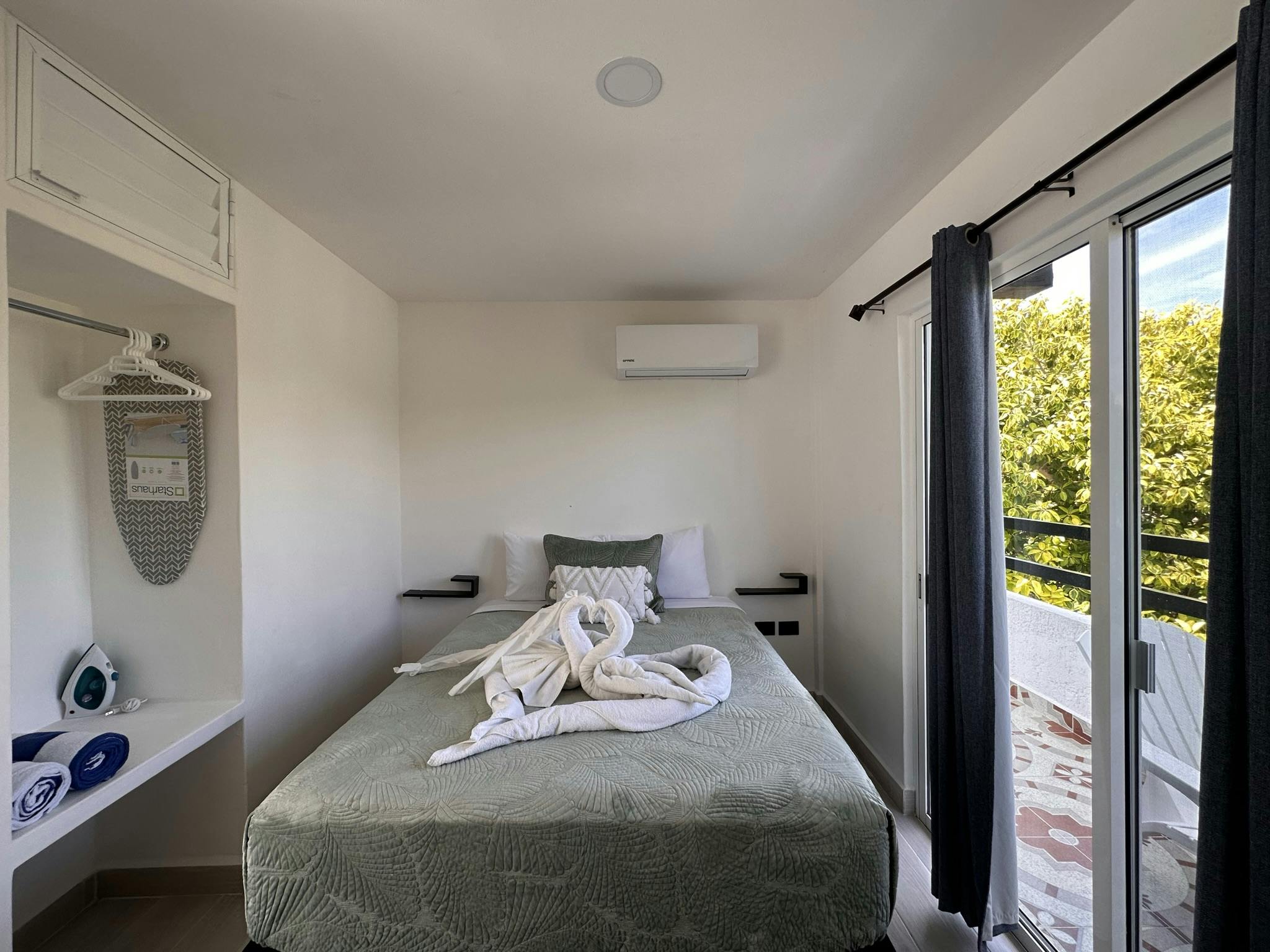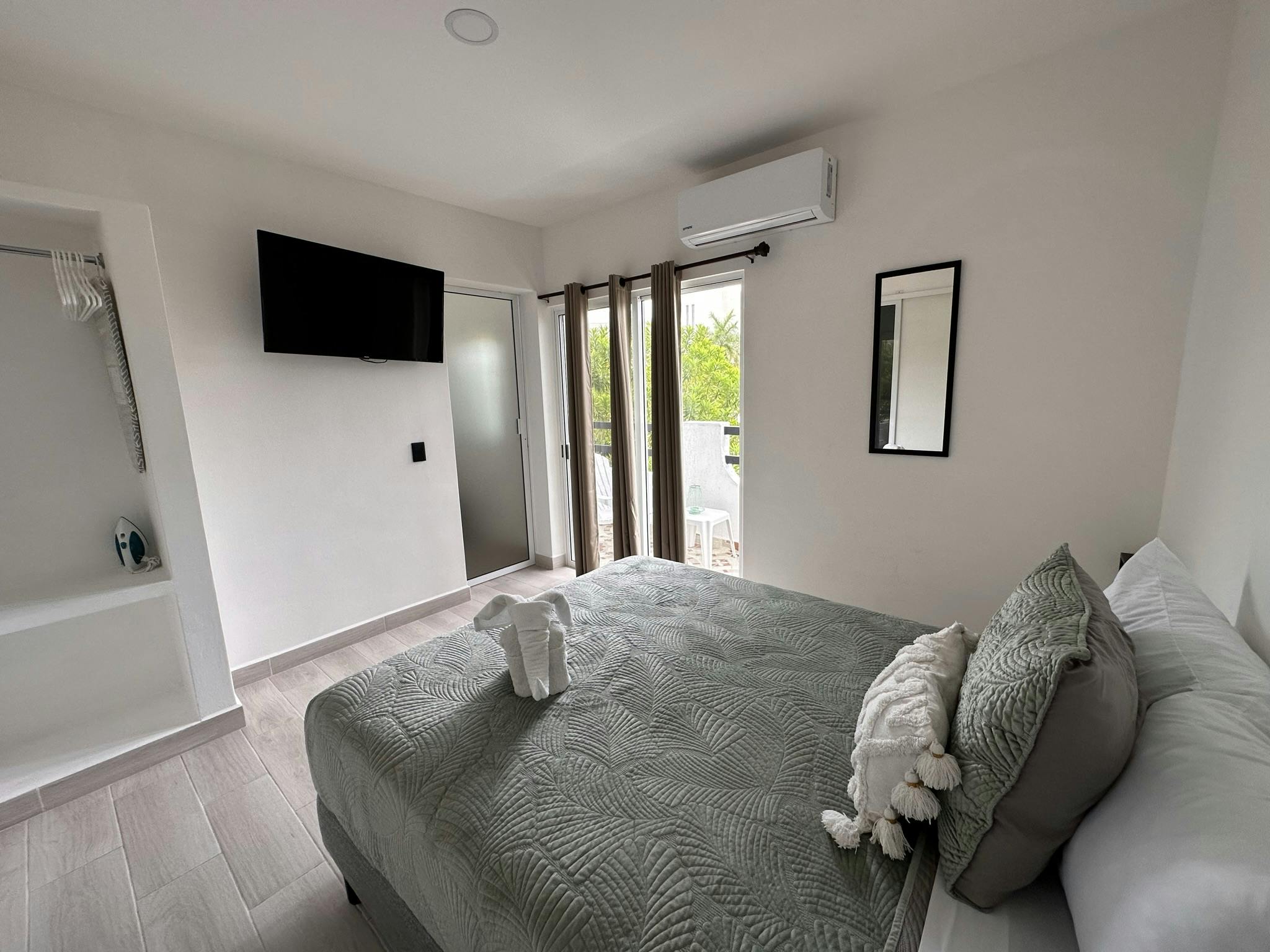 "Enjoy the paradisiacal essence of Playa del Carmen in this charming apartment. Steps away from stunning beaches, soft sand and crystal clear waters await you. Relax in the spring water pool and admire Fifth Avenue from the balcony. Fully equipped kitchen, comfortable queen bed and TV for your favorite shows. Luxury, comfort and natural beauty in a peaceful place."